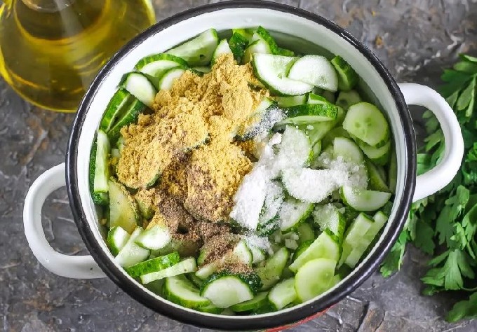 - Stapsgewijs recept voor komkommersalade met mosterd en kurkuma