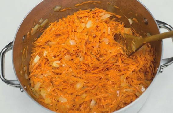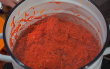 - Voeg geraspte wortel toe aan de tomaten.