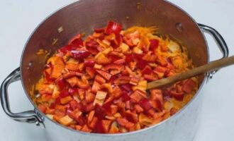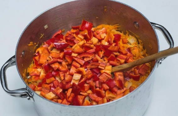 - Voeg fijngesneden paprika toe.
