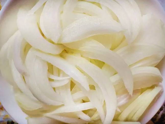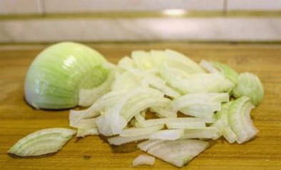 - Snijd de uien in dunne ringen of halve ringen.