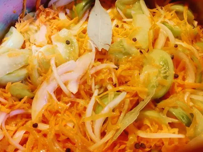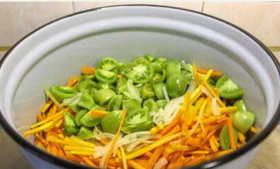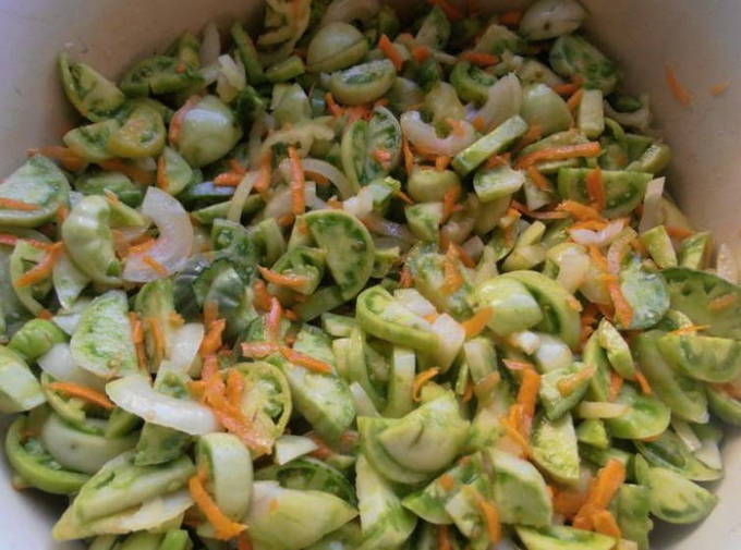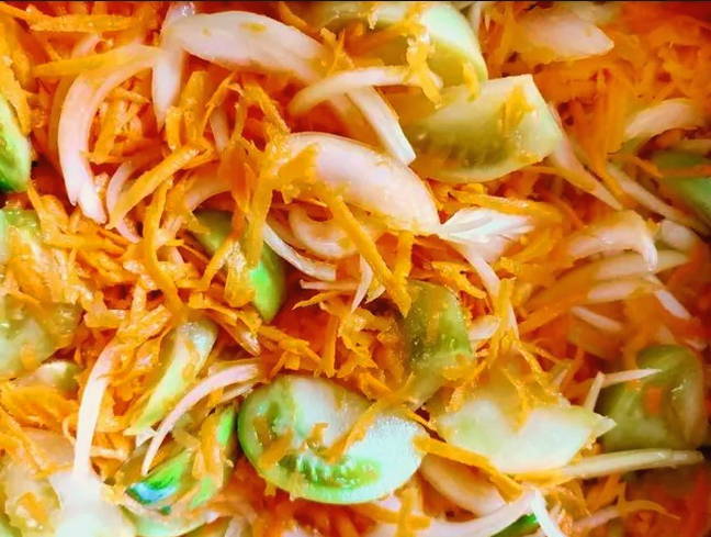 - Heerlijke groene tomatensalade met wortelen en uien