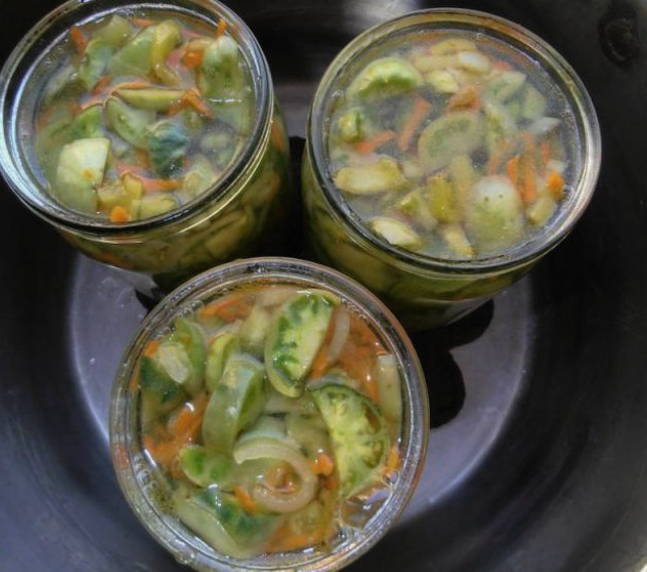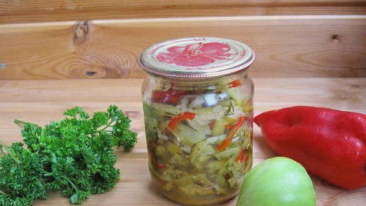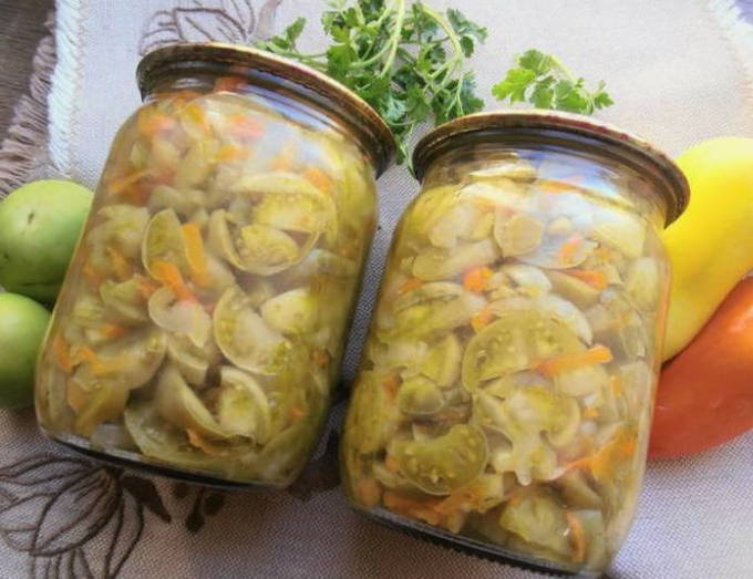 Groene tomatensalade zonder koken en steriliseren