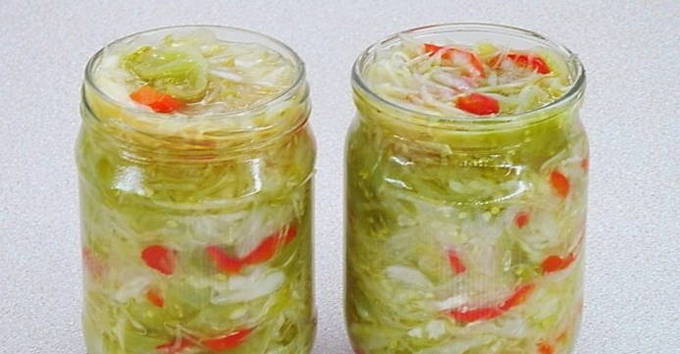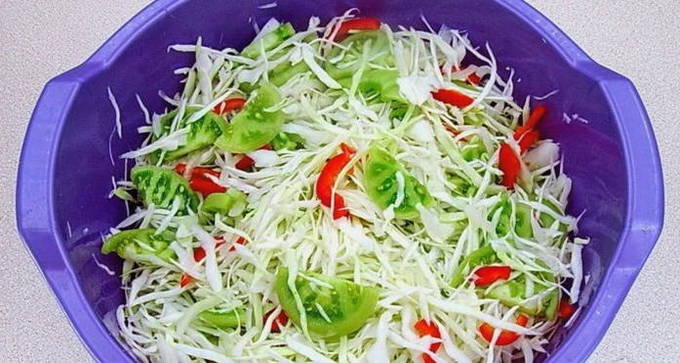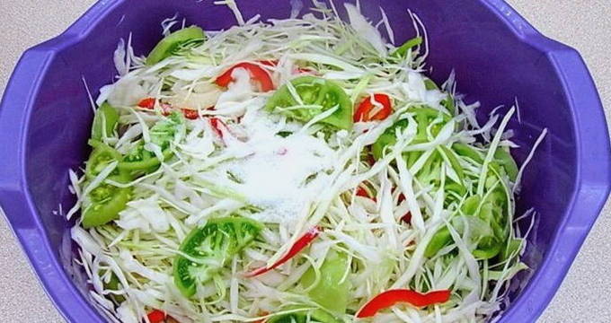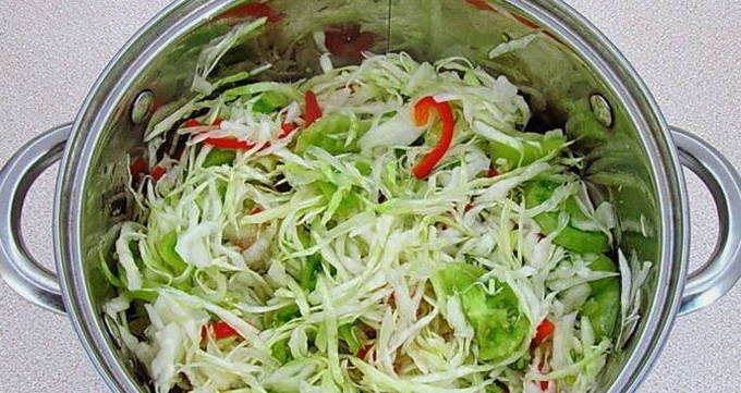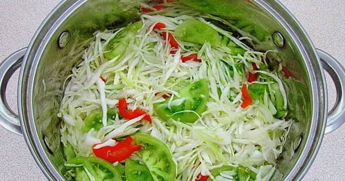 - Gehakte groene tomaten met kool voor de winter