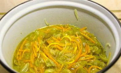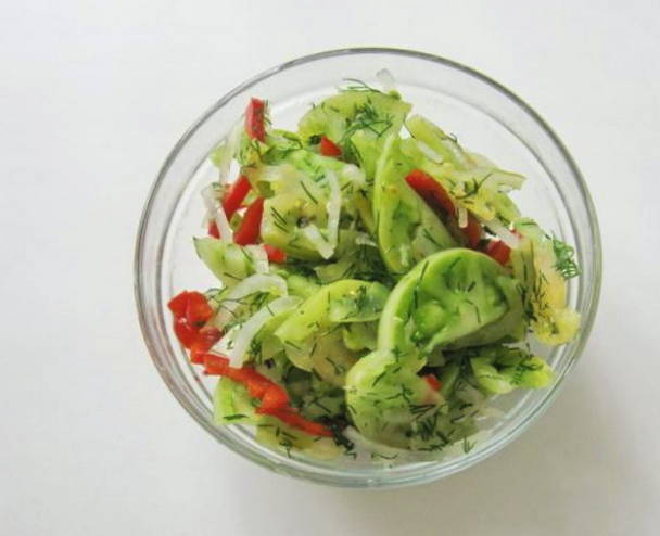 - Groene tomatensalade zonder koken en steriliseren