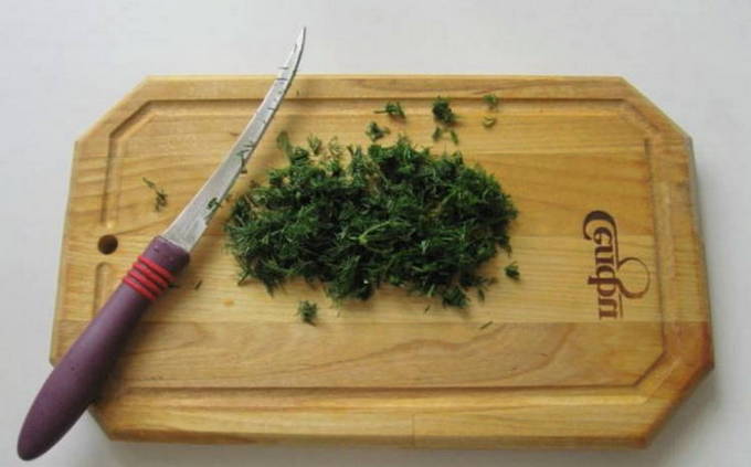 - We vullen het voedsel met suiker, zout. We gieten ook azijn en plantaardige olie in.