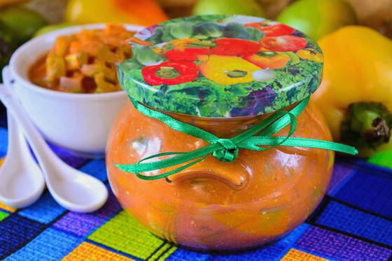 - Sappige tomatensalade met paprika in potjes