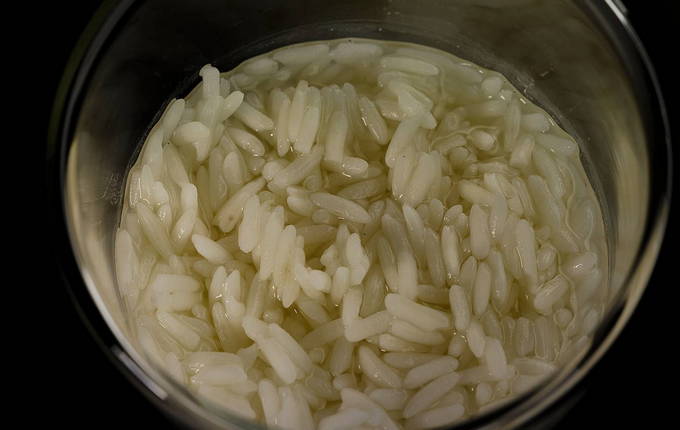 - Spoel een glas rijst af en laat het weken in koud water.