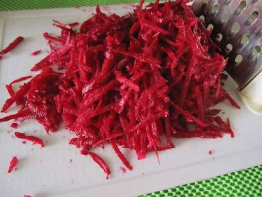 - Schil de bieten en wrijf ze op een grove rasp.