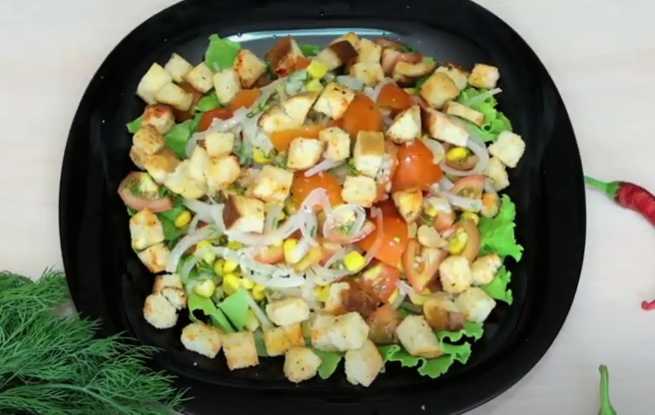 - Simpele en verrukkelijke salade met mais, tomaten en croutons