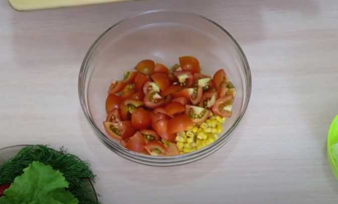 - Was de tomaten, droog ze en snijd ze in kleine blokjes. We sturen naar maïs.