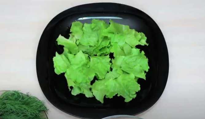 - Leg groene slablaadjes op geportioneerde borden of een gewoon gerecht.