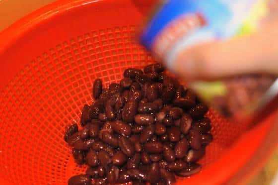 - Doe de bonen uit de pot in een vergiet en laat de overtollige vloeistof weglopen. Giet het in een kom.