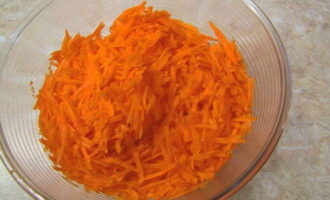 Rasp de wortelen. Om dit te doen, kunt u een grove rasp of een keukenmachine nemen.