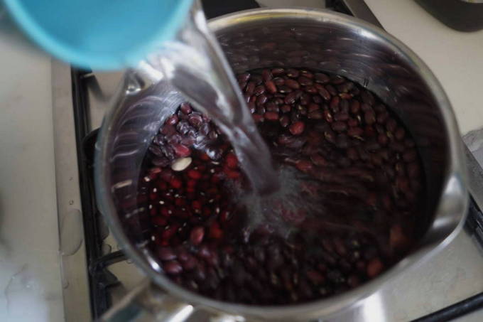 Voor het koken moeten de gedroogde bonen een nacht in koud water worden geweekt en vervolgens worden uitgelekt, vers gegoten en bijna gaar gekookt.