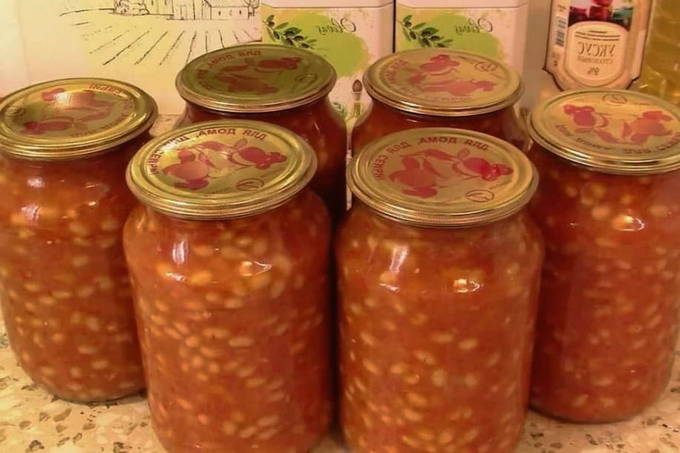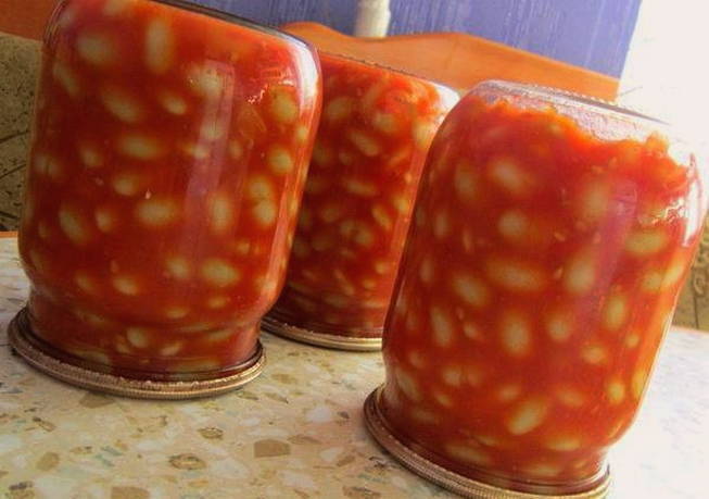 Hoe bonen in tomatensaus koken voor opslag in potten?