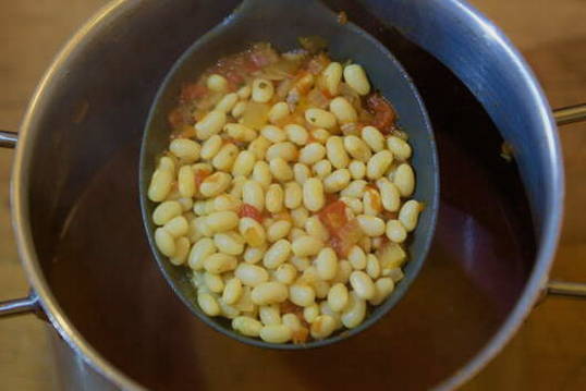 - Rode of witte bonen, enkele uren voorgeweekt, moeten worden gekookt tot ze half gaar zijn.