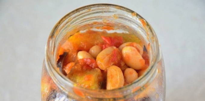Doe vervolgens de bonen en de benodigde hoeveelheid azijn in de salade, meng en kook nog 30 minuten. Schik de afgewerkte snack in gesteriliseerde potten en sluit goed af. Heerlijke bonen met groenten zijn klaar!