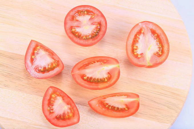 - Was de tomaten, verwijder de steel en snijd ze in willekeurige stukjes, zodat ze gemakkelijk kunnen worden gepureerd.