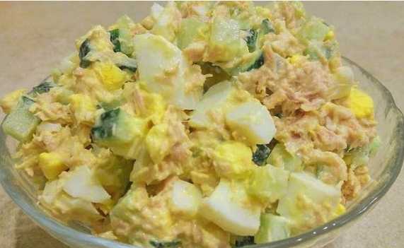 - Simpele en snelle salade met tonijn uit blik, ei en komkommer
