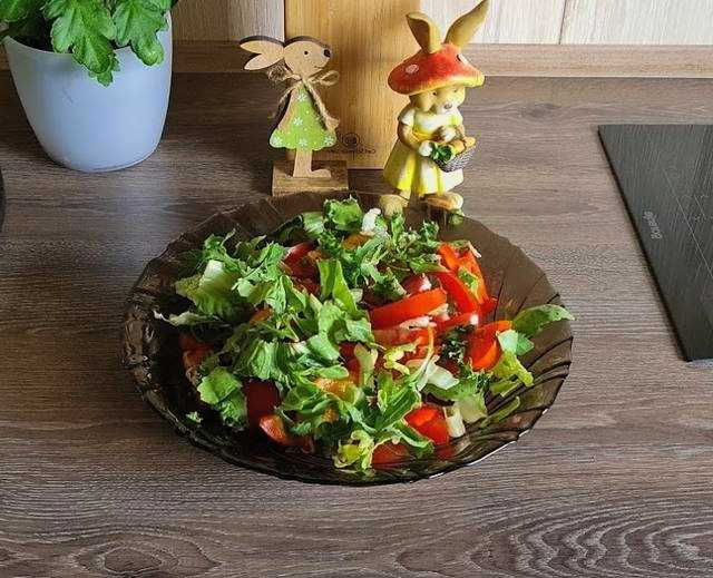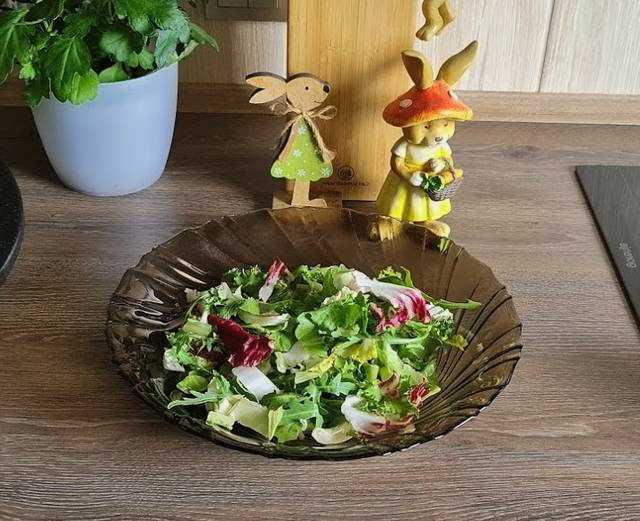 - Spoel de salademix af en droog hem op een handdoek. We leggen op de bodem van de serveerschaal of in porties op elk bord.