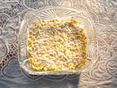 - We doen de maïs in een vergiet en laten het sap weglopen. Leg de korrels op de tonijn, egaliseer ze.