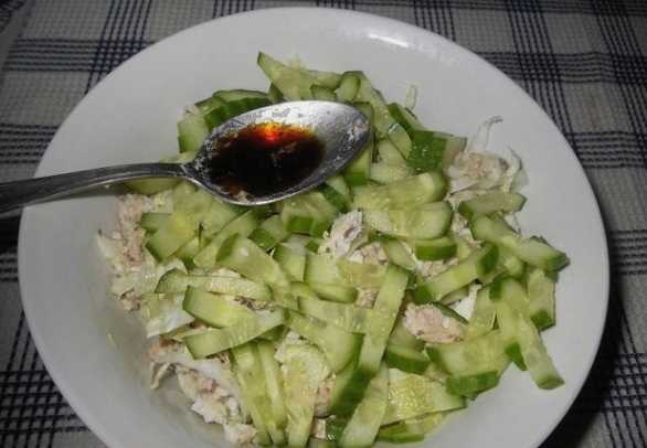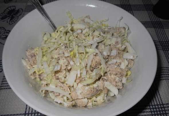 Het is beter om zo'n salade vlak voor het opdienen te bereiden om de versheid van de Chinese kool zoveel mogelijk te behouden. Koken kost niet veel tijd - alles duurt niet langer dan een kwartier. De salade is goed geschikt als aperitief voor de lunch, maar ook als een licht diner. Dankzij tonijn en eieren is verzadiging gegarandeerd.