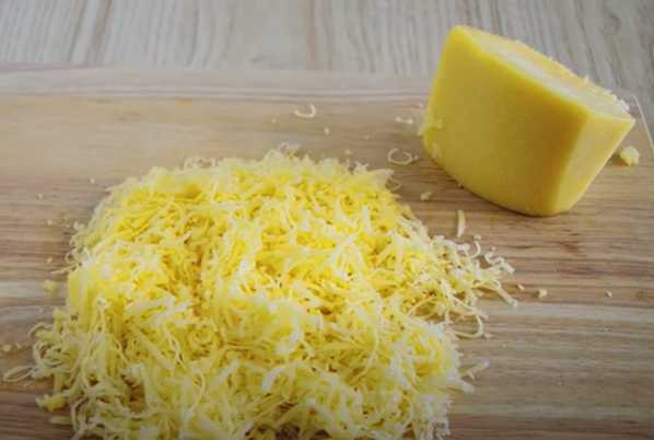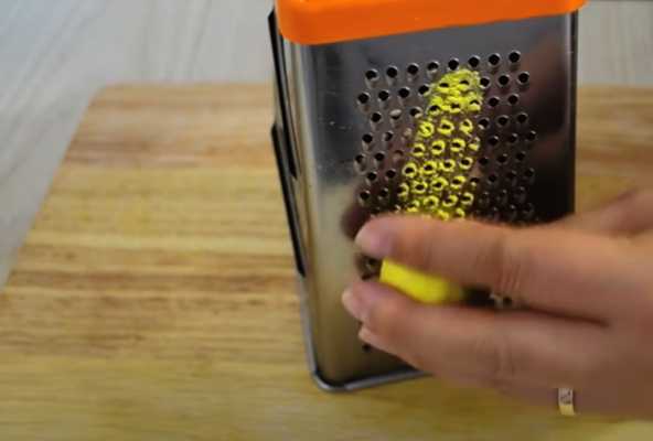- Drie dooiers apart op een fijne rasp.