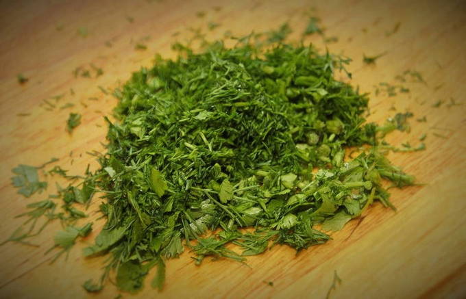 - Verse gehakte greens - om te serveren.
