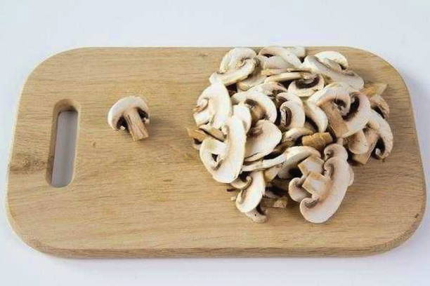 - Grote champignons moeten in plakjes worden verdeeld, kleine kunnen heel worden gelaten.