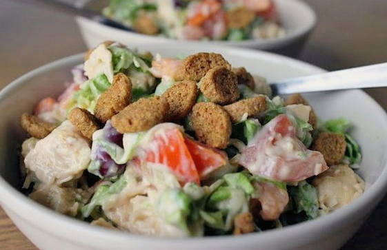 - Heerlijke salade met gerookte kip, Chinese kool en croutons