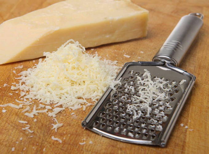 - Het is beter om harde kaas van meer aromatische variëteiten te nemen om het gerecht smakelijk te maken. Je kunt Maasdammer of Russische kaas nemen.