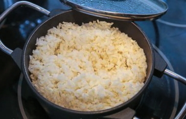 - Bedek de lagen sla met de resterende rijst.