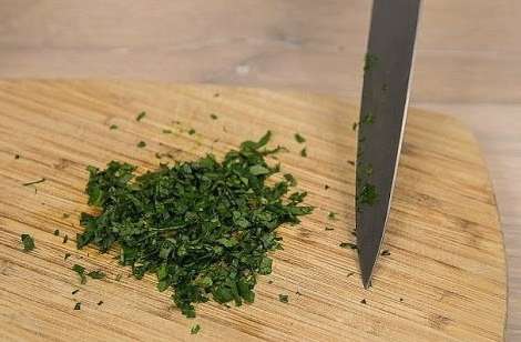 - We wassen de verse kruiden en laten ze drogen. Hak het fijn met een mes.