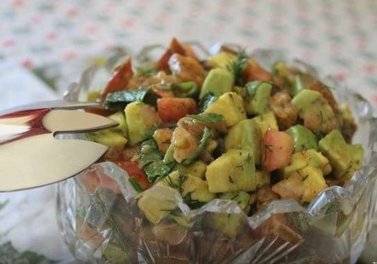 - Heerlijke en voedzame salade met gezouten rode vis en avocado