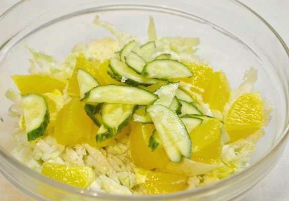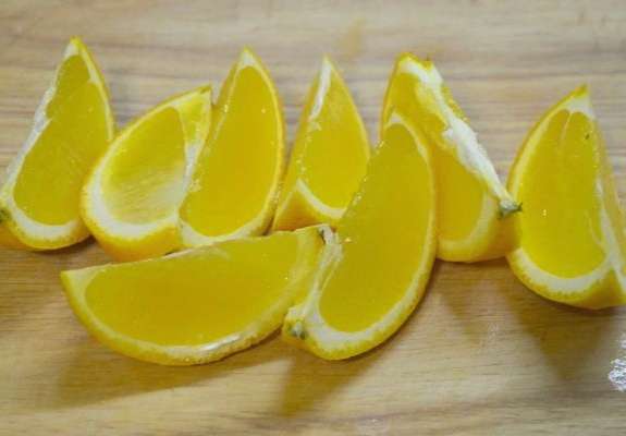- We wassen de helft van de sinaasappel, verdelen deze in plakjes en verwijderen er voorzichtig de zaadjes uit. We leggen het bij de kool.