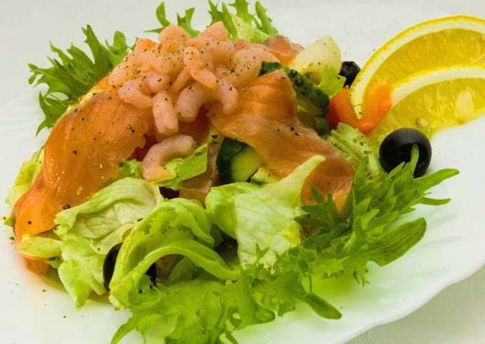 - Stap-voor-stap recept voor salade van rode vis en garnalen