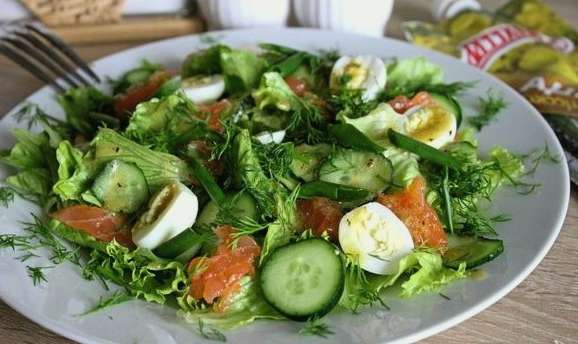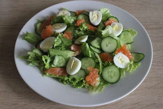 - Geurige salade met rode vis en verse komkommer
