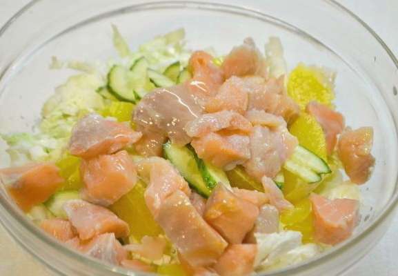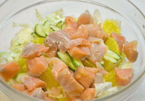 - Lichte en originele salade met rode vis en Chinese kool
