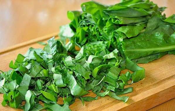 We wassen de verse zuring, laten hem drogen en hakken hem vervolgens met een mes.