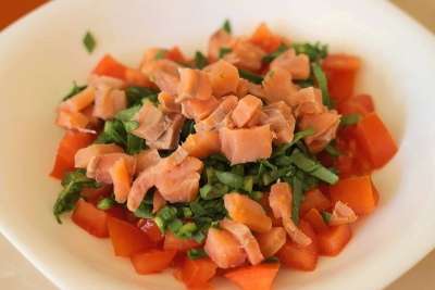 Een snel en eenvoudig recept voor salade van rode vis en tomaten