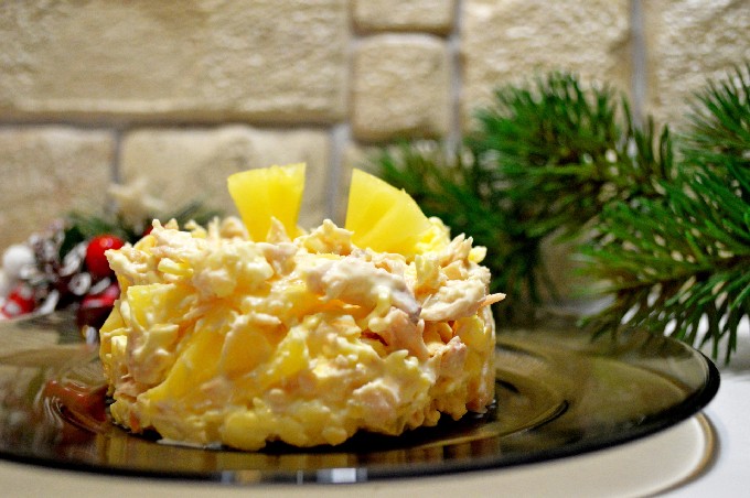 Voor mij is ananas in een salade heel ongebruikelijk, ik zal een dezer dagen proberen te koken, ik vond het recept voor de "Tenderness" -salade lekker, het ziet er erg smakelijk uit