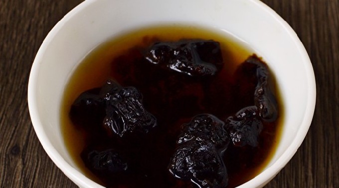 - We wassen de pruimen in koud water, gieten er kokend water over, laten ze 10 minuten in warm water weken. Daarna laten we het water weglopen en in kleine stukjes snijden.