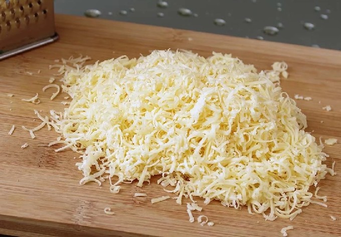 - Kaas moet fijn geraspt worden op een kaasrasp.