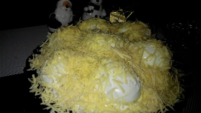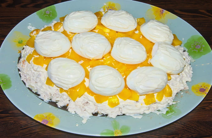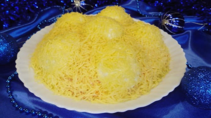 - Het klassieke recept voor de salade "Snowdrifts" met kip