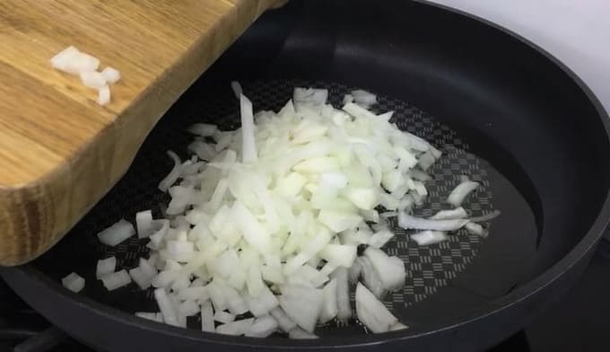 - Doe de ui in een met olie voorverwarmde koekenpan.