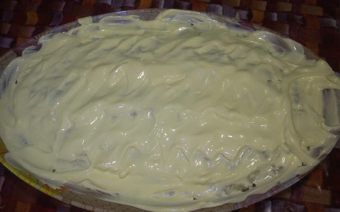 - Giet mayonaise op het vlees.