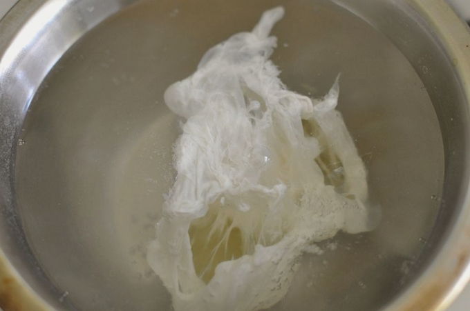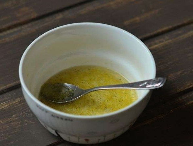 - Giet 50 g water in een aparte kom, voeg citroensap van een halve citroen, 2 dooiers met mosterd, zout en peper toe, meng. Zet de kom op het vuur en wacht om te sudderen, af en toe roeren. Haal van het vuur zodra de eerste bubbels verschijnen.