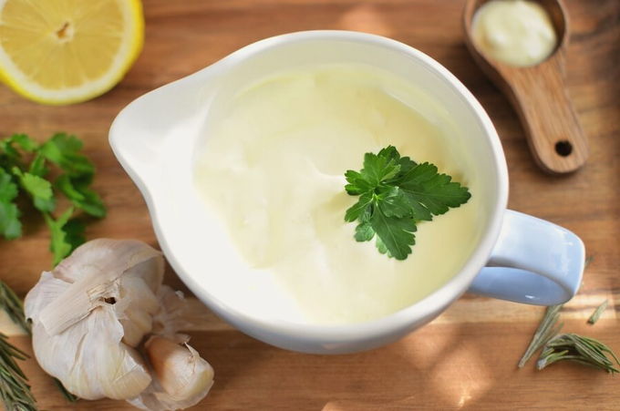 - Doe zure room in een blender, voeg pap van knoflook toe die door een breker is gehaald en gehakte komkommers. De saus zal enigszins op tartaar lijken, wat heerlijk is bij zeevruchten.