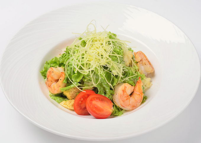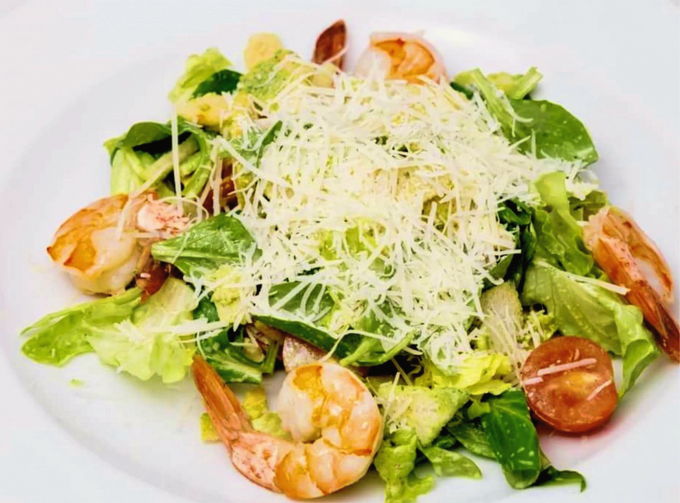 - Caesarsalade met tijgergarnalen en zalm