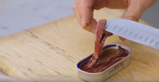 - Ansjovis uit blik (filet) - 100 g.
